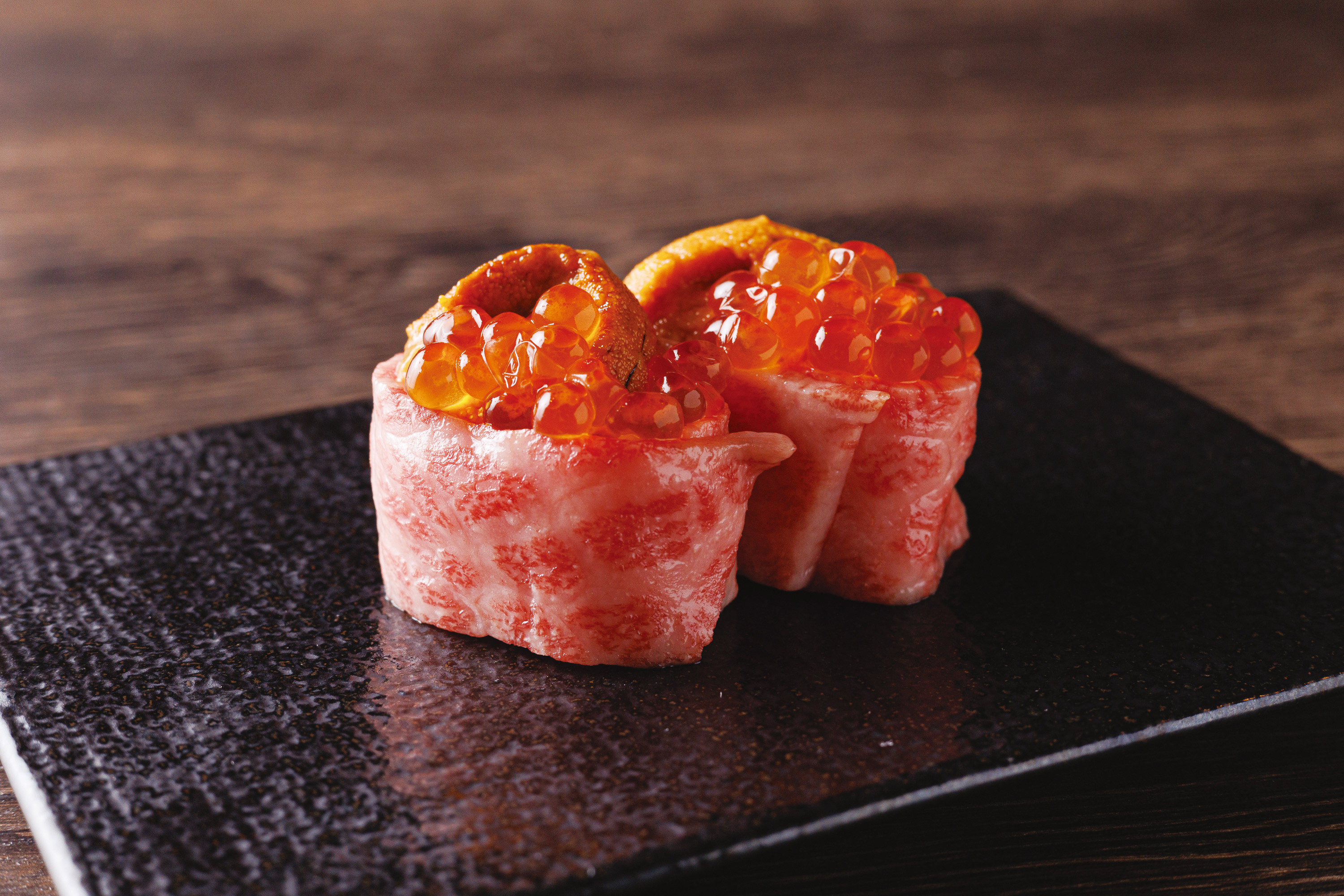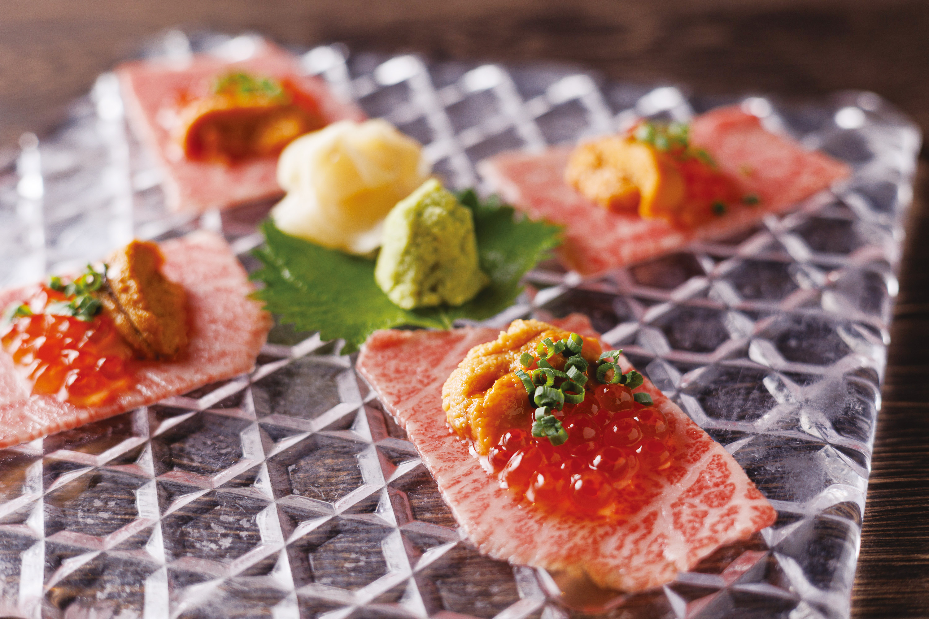 和牛刺し 雲丹いくら乗せ